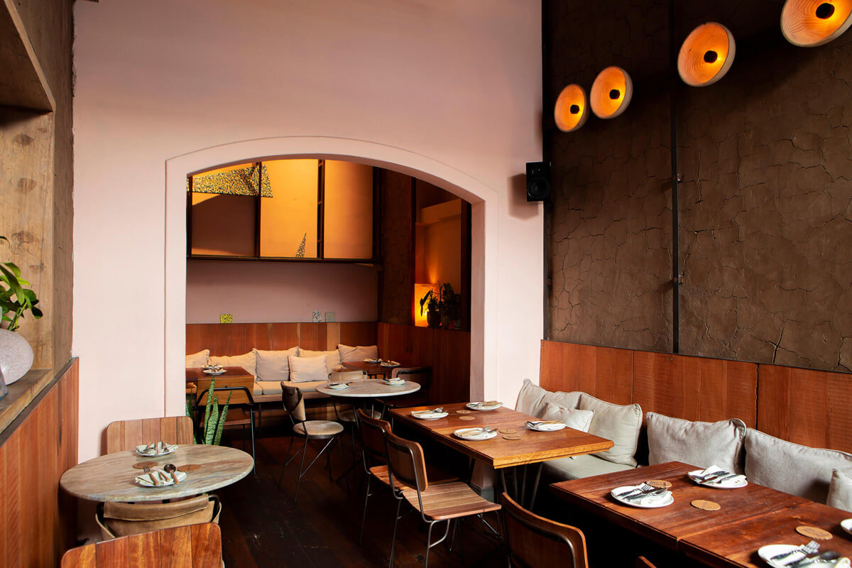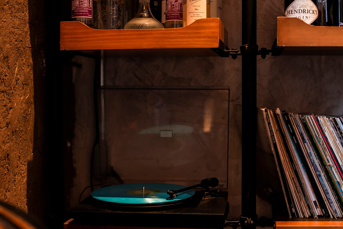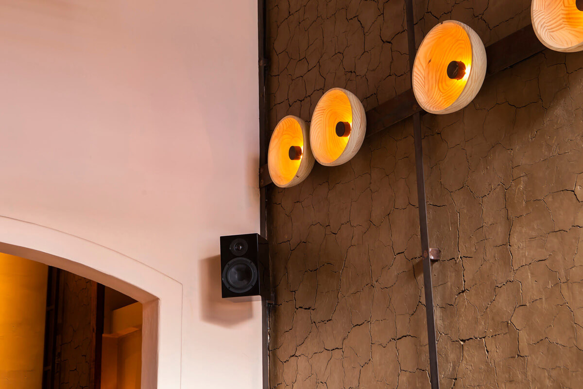 This cozy restaurant was designed by the Costa Herrera Arquitectos Studio, in response to chef Ricardo Martins's request. Music holds a special significance for him, and he desired it to be evident within the restaurant. Vinyl records provide the primary source of the sound here, which is why we picked a Pro-Ject Hi-Fi turntable for the bar and positioned attached speakers evenly across the three rooms.
