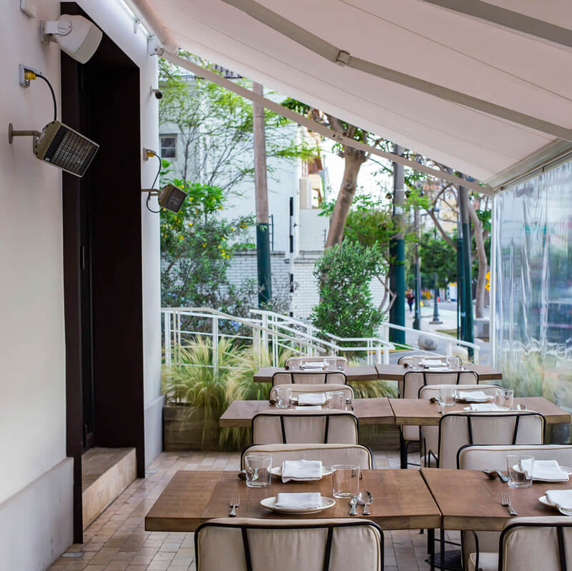 This impeccable restaurant was designed by the Costa Herrera Arquitectos Studio in collaboration with architect Jorge Baertl. This space takes care of the smallest details in everything it offers to its customers. The interiors feature recessed speakers, which are discreetly placed so as not to disturb the moldings and intricate details. For the outdoor areas, we selected attached speakers that are weather-resistant and deliver exceptional sound coverage for the two extended terraces.