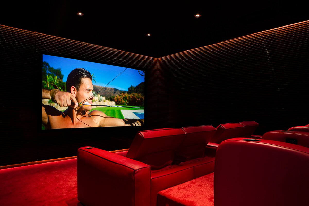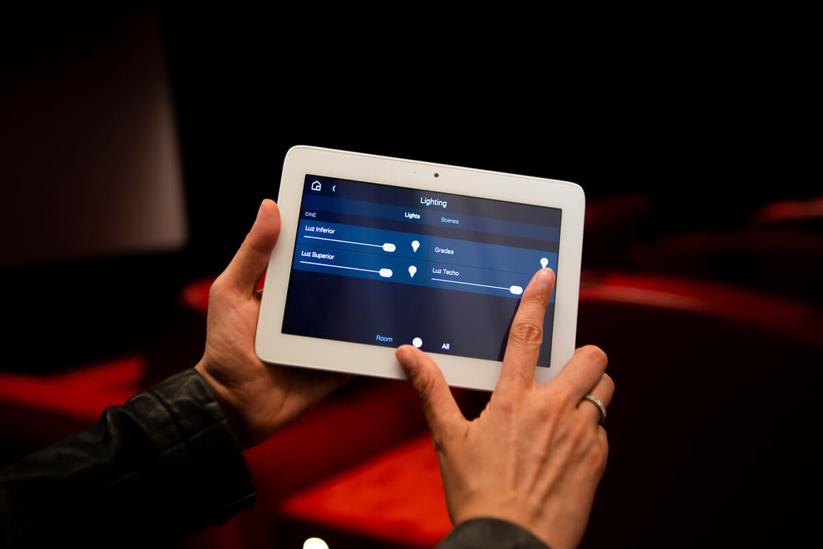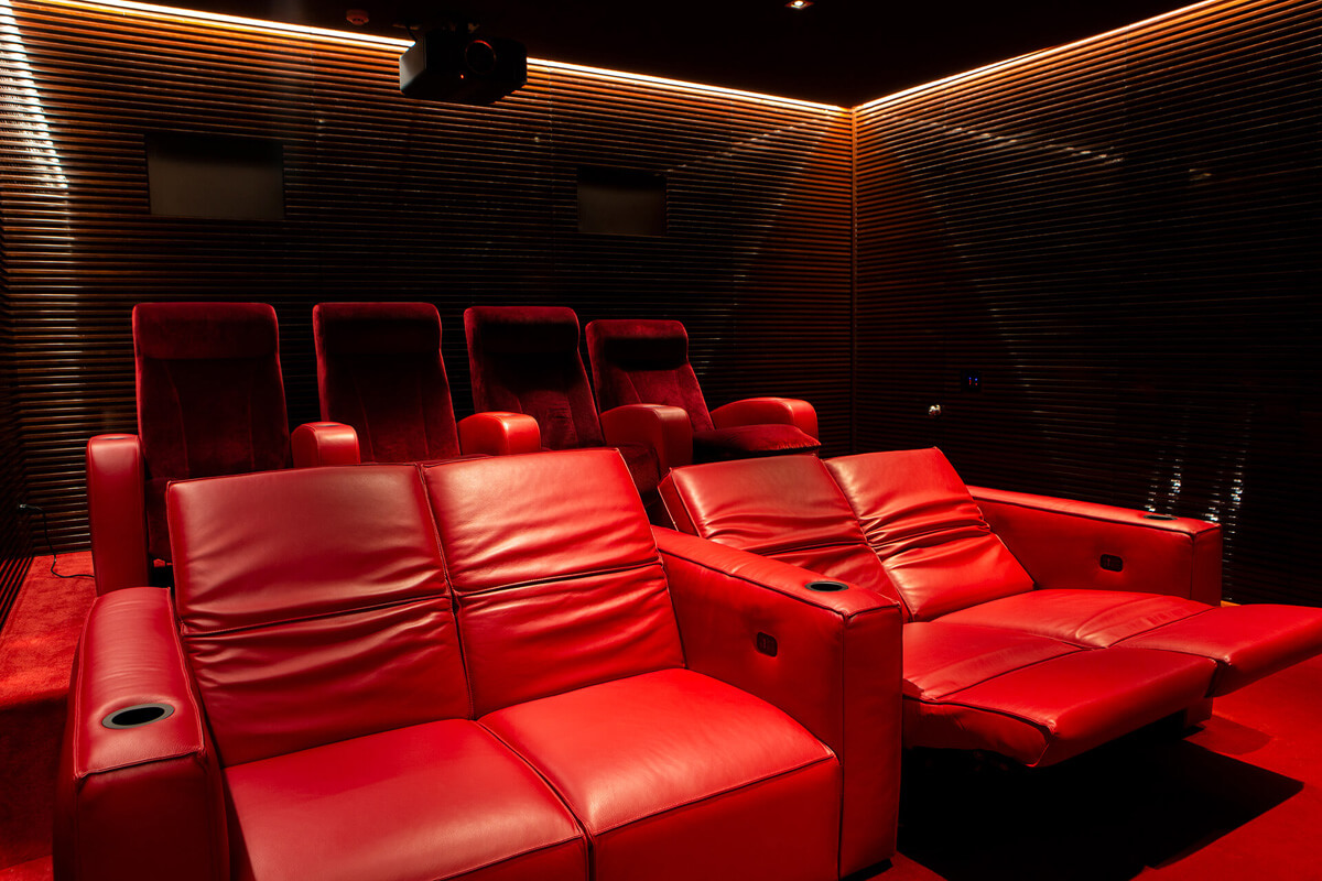 For this project of a high-performance and fully integrated private cinema, we collaborated with decorators Eduardo de las Casas and Orry Dajes, working from the floor plans. The limited space for equipment presented a challenge, but we overcame it by creating a system with professional, custom-made equipment that fit perfectly. The cinema features comfortable motorized armchairs from Belgium, carefully selected for accessories, color, and a blend of fabrics and leather. The entire cinema, including audio, video, lighting, and air conditioning, is easily managed by a custom-programmed system that accommodates the client's needs.