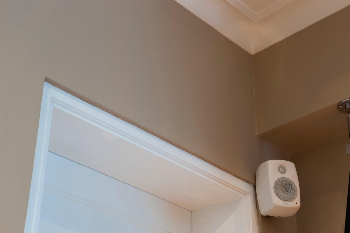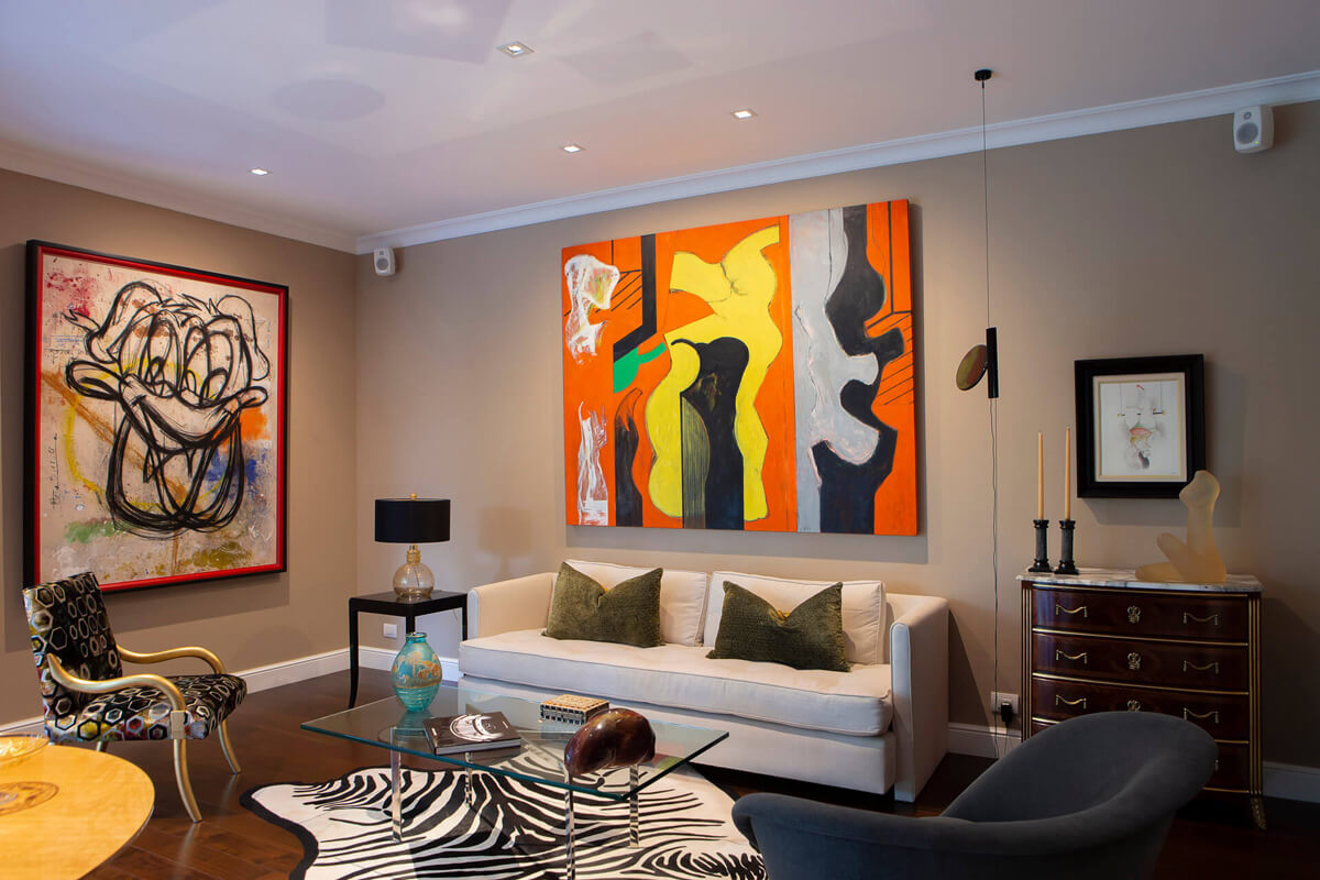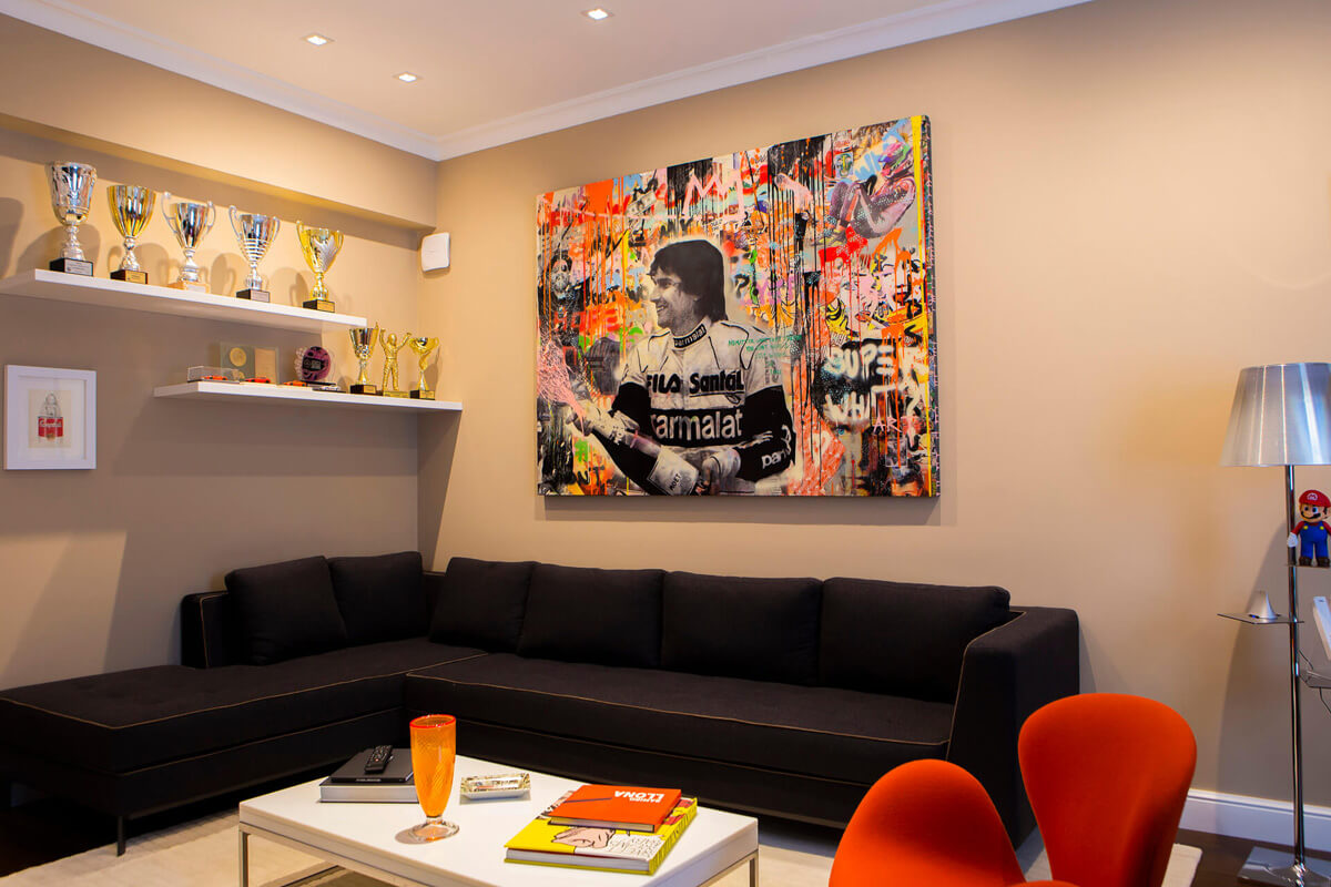 Eduardo de las Casas and Orry Dajes were responsible for the elegant and vibrant decoration of this flat. The client requested audio and video distribution in various areas of the apartment through a centralized matrix. The challenge was the inability to integrate equipment, so they opted for discreetly positioned built-in speakers that would provide excellent sound without interfering with the decor.