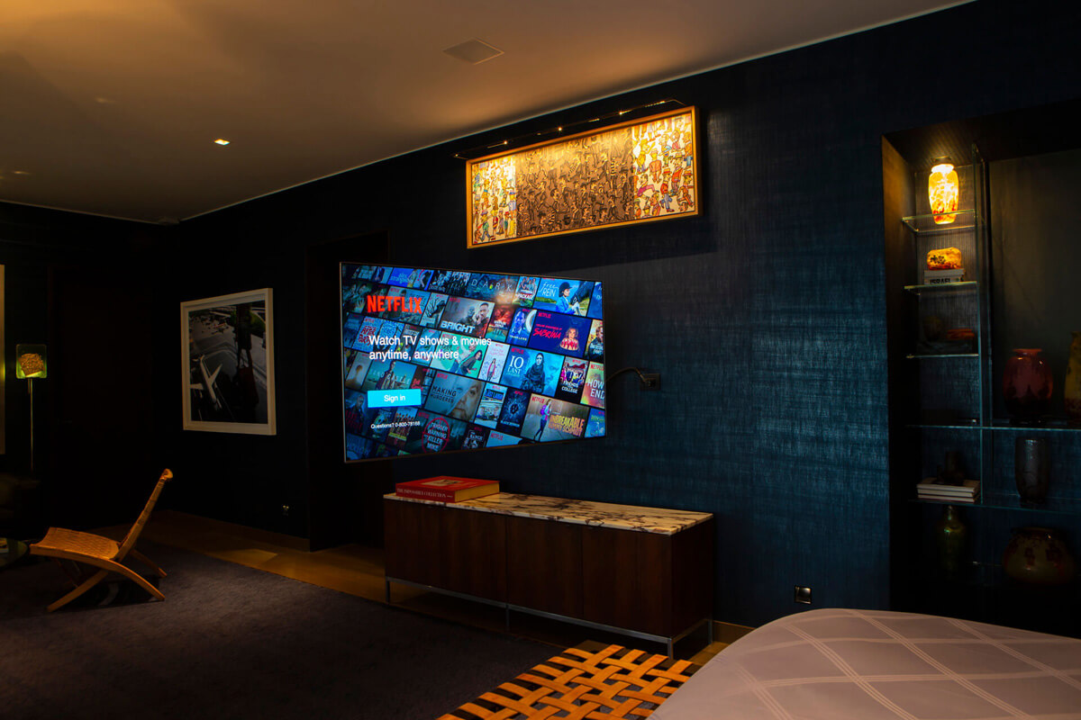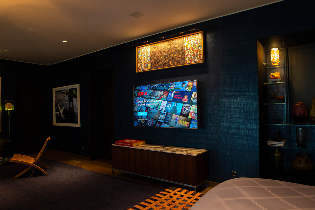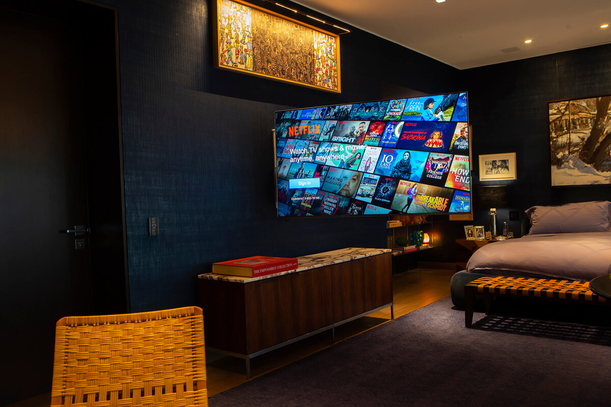 automatizado, se convierte en un cine premium con sonido inmersivo. El dormitorio principal