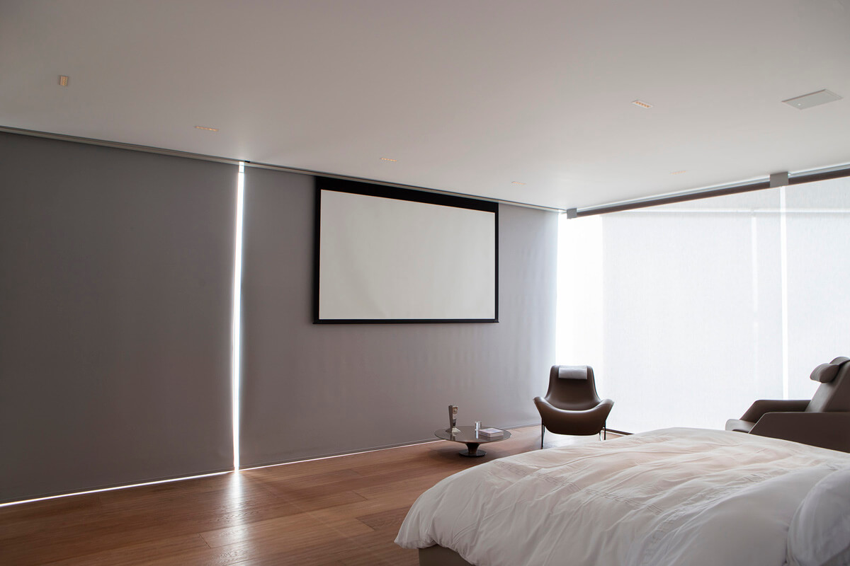 Impressive penthouse designed by decorators Eduardo De Las Casas and Orry Dajes. The task was to bring high-quality audio to every corner of the house: terrace, lounge, main living room, balcony, dining room, living room, living room-bar, and bedrooms. To preserve an aesthetically clean look, through our design and engineering, we integrated the equipment by installing speakers in the ceilings and walls, projectors on the walls, and screens in the false ceiling. This allowed us to achieve amazing sound and appearance, without having a single piece of equipment in sight.